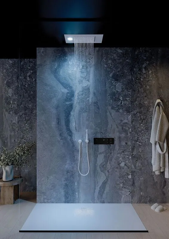 Dass wir Vieles im Alltag digital bedienen, ist für die meisten längst komfortable Normalität. Auch in die eigenen vier Wänden halten digitale Steuerungen und vernetzte Geräte zunehmend Einzug. Rund 28 Millionen Haushalte in Deutschland sollen nach einer Prognose von Statista aus dem letzten Jahr bis 2026 mit smarten Lösungen ausgestattet sein. „Smart Living ist für viele Menschen, insbesondere für die Generation, die mit der Digitalisierung aufgewachsen ist, der Inbegriff eines zeitgemäßen Lebens- und Wohnstils – auch im Bad. Für sie macht Kludi jetzt die Dusche smart“, erläutert Leonardo de Muro, Group Marketing Vice President. Mit Kludi-PushTronic und Kludi-TouchTronic hat die Premiummarke aus dem Sauerland für diese wachsende Zielgruppe gleich zwei digitale Duschsteuerungen für Highend-Anwendungen entwickelt, die für ein rundum smartes Duscherlebnis sorgen.