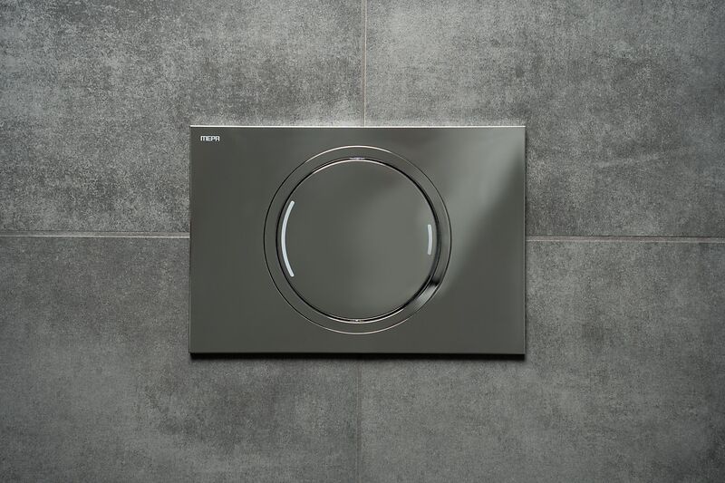 Die Betätigungsplatte MEPA Zero besticht durch ihr zeitloses Design, das elegant umgesetzt und auf das Wesentliche reduziert ist. Der zentrale Chromring unterstreicht die geometrische Formgebung – charakteristisches Merkmal ist ein innovatives Bedienkonzept, das bei der WC-Betätigung die Wahl der kleinen und großen Spülmenge mit nur einer Taste ermöglicht.